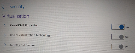 Despite enabling many of the common DMA protection recommendations, this setting may not be correctly set due to other factors such as older hardware limitations or other BIOS settings that remain unadjusted. In order to have ‘Kernel DMA Protection’ set to ‘On’, the following requirements must be met: